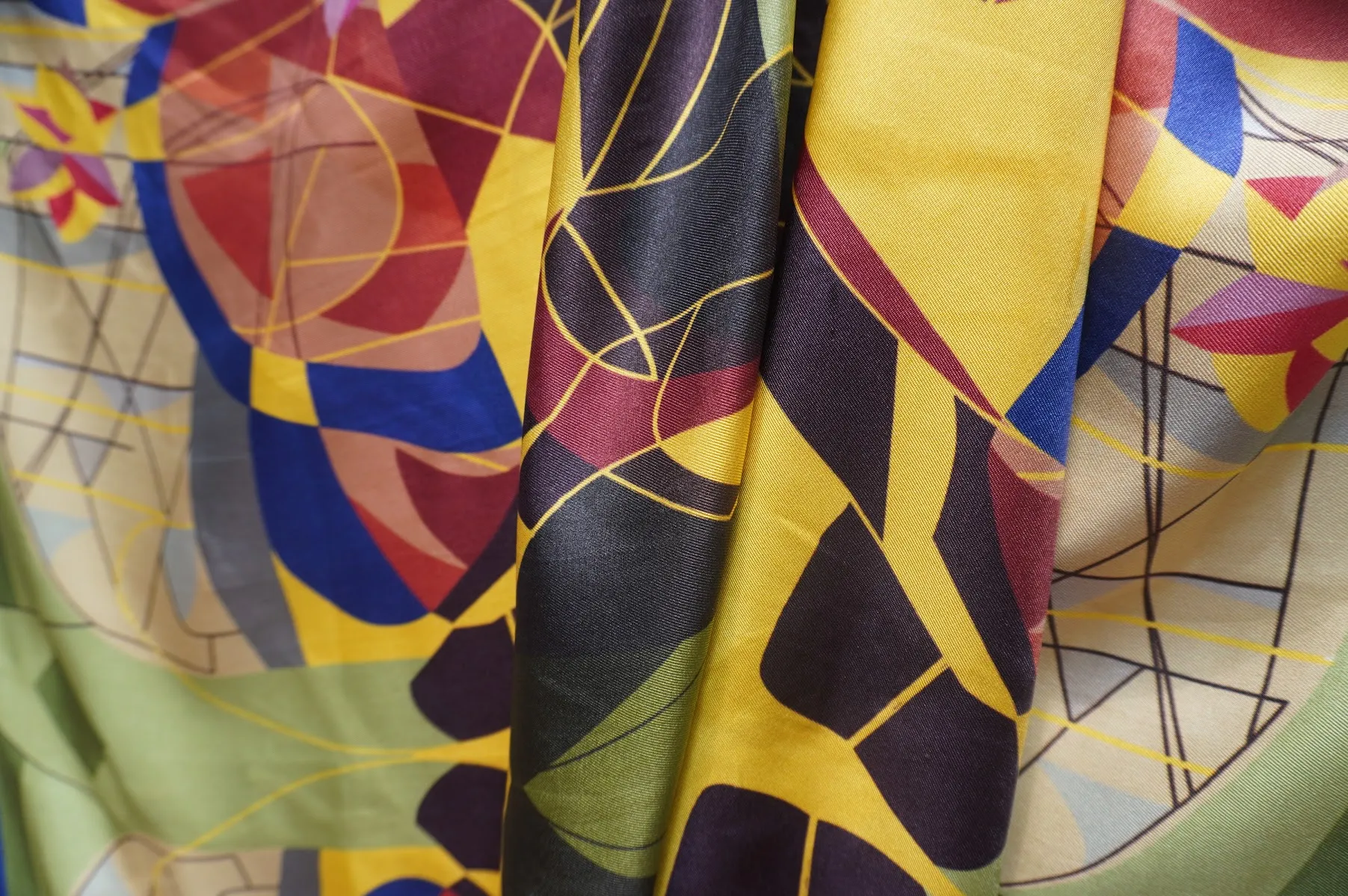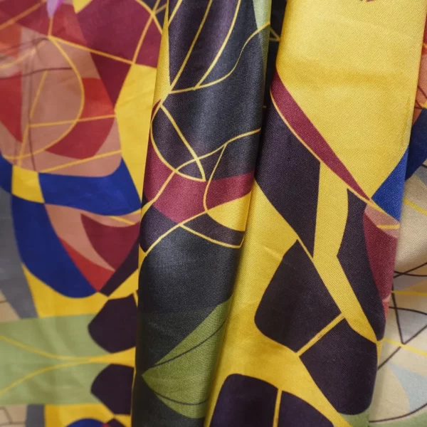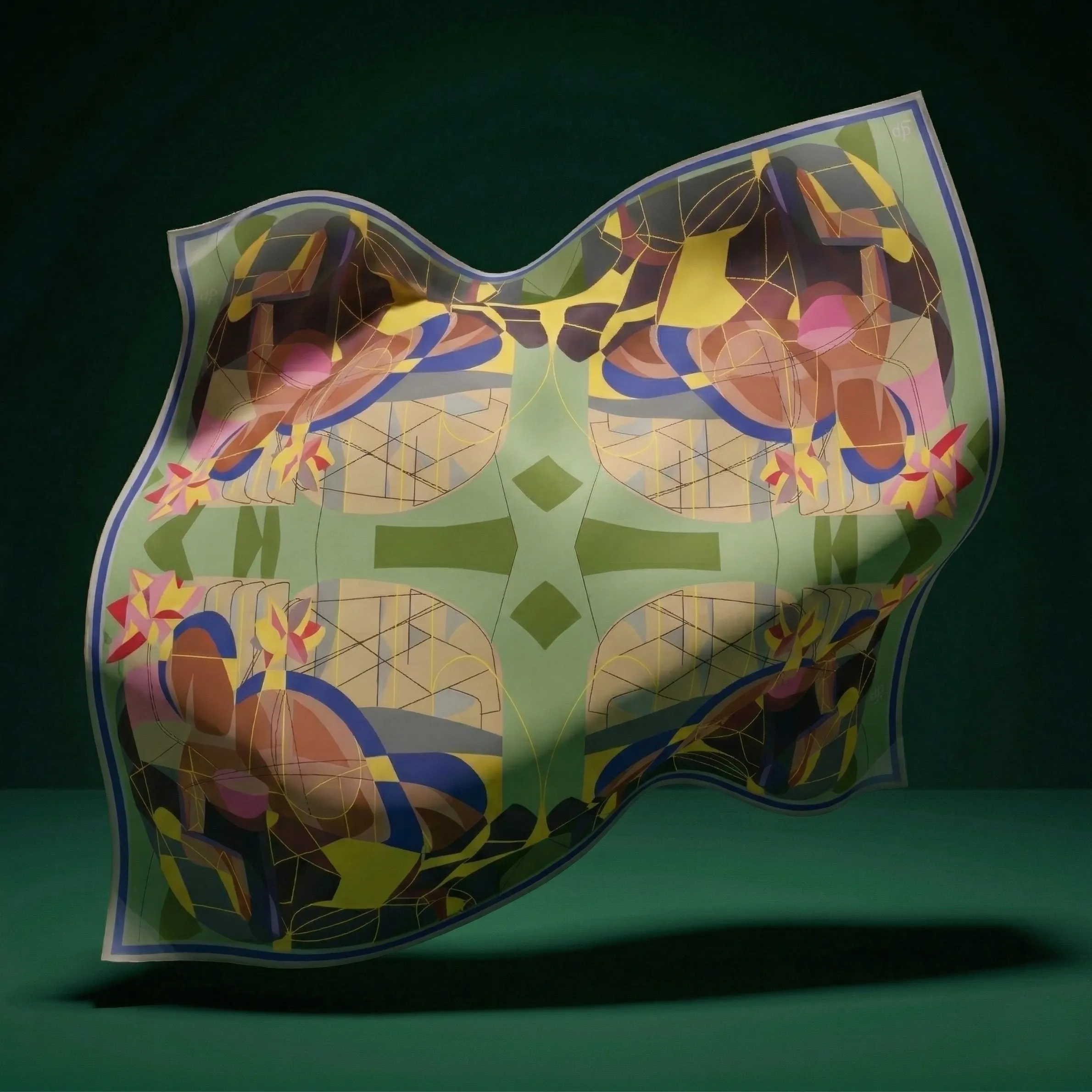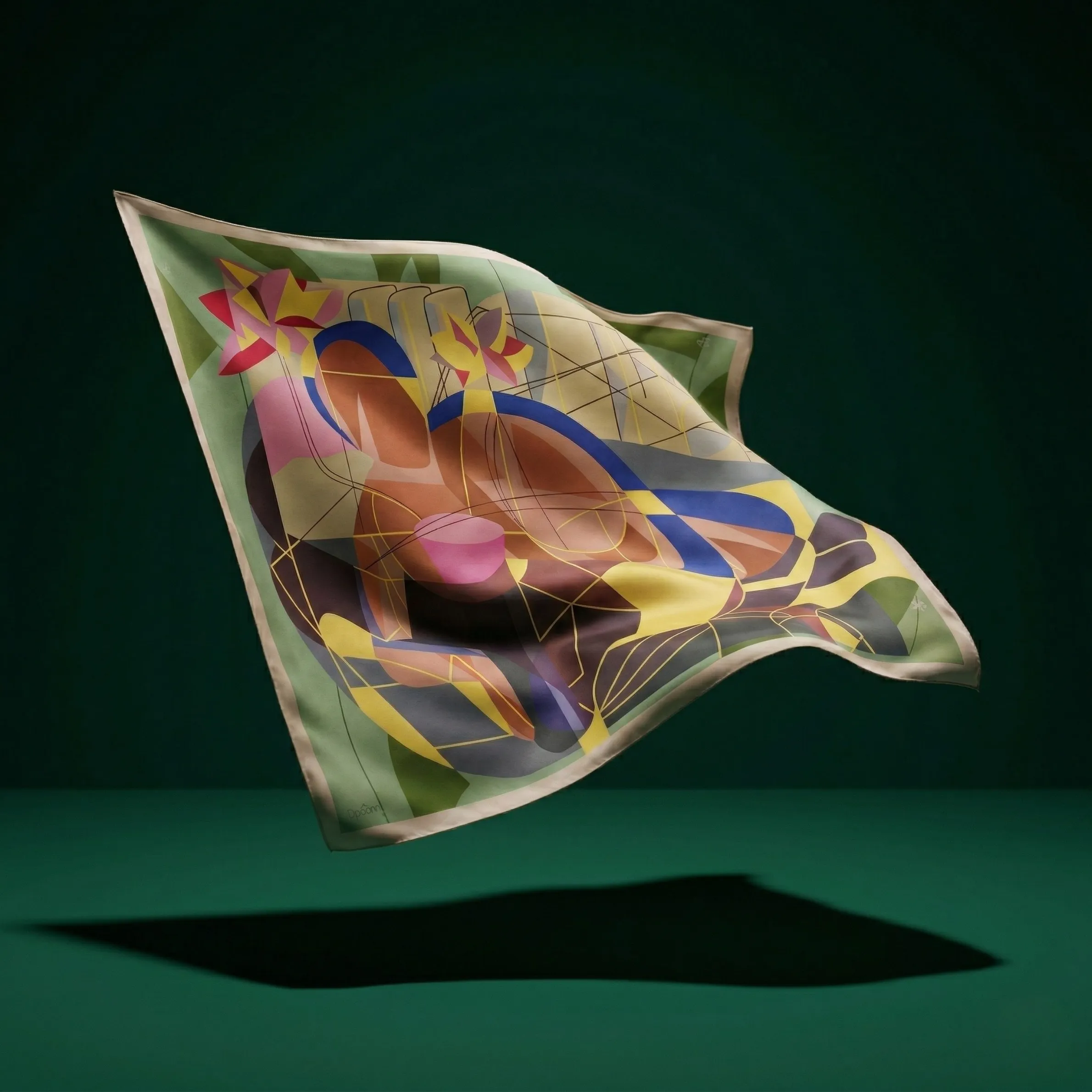 Turtle and Sword places two opposing forces in perfect reflection — armored mass meets sharp angular cuts, abstracted into fractured planes of earth, blue, and yellow. The mirrored symmetry locks both energies in suspended tension.